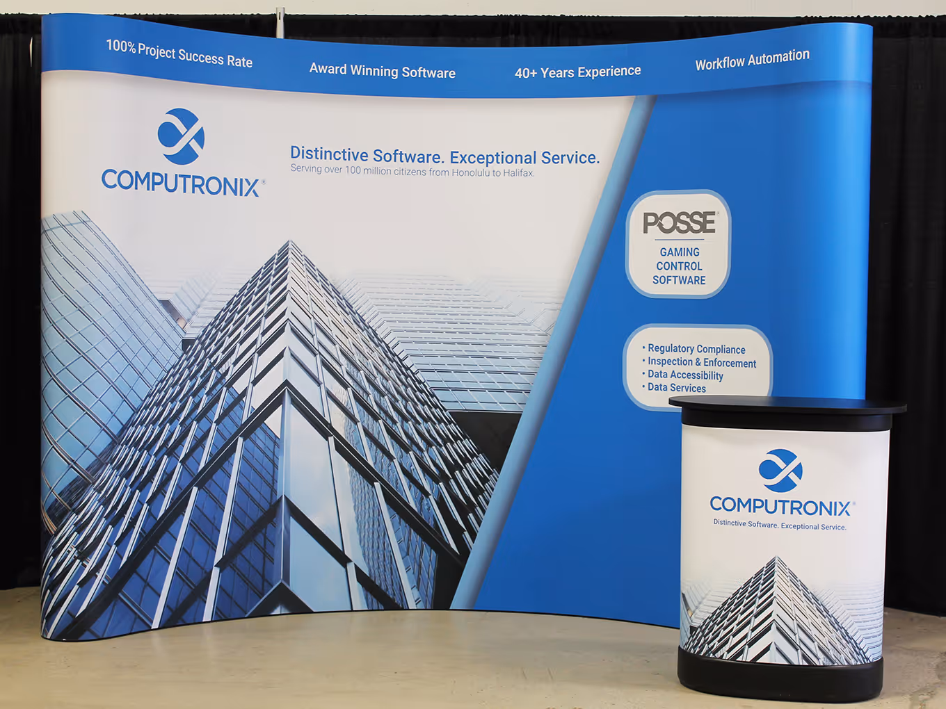 Instead of managing multiple banner stands or reprinting full panels, you get one adaptable system that evolves with your brand — keeping your messaging current, clean, and professional at every event.
