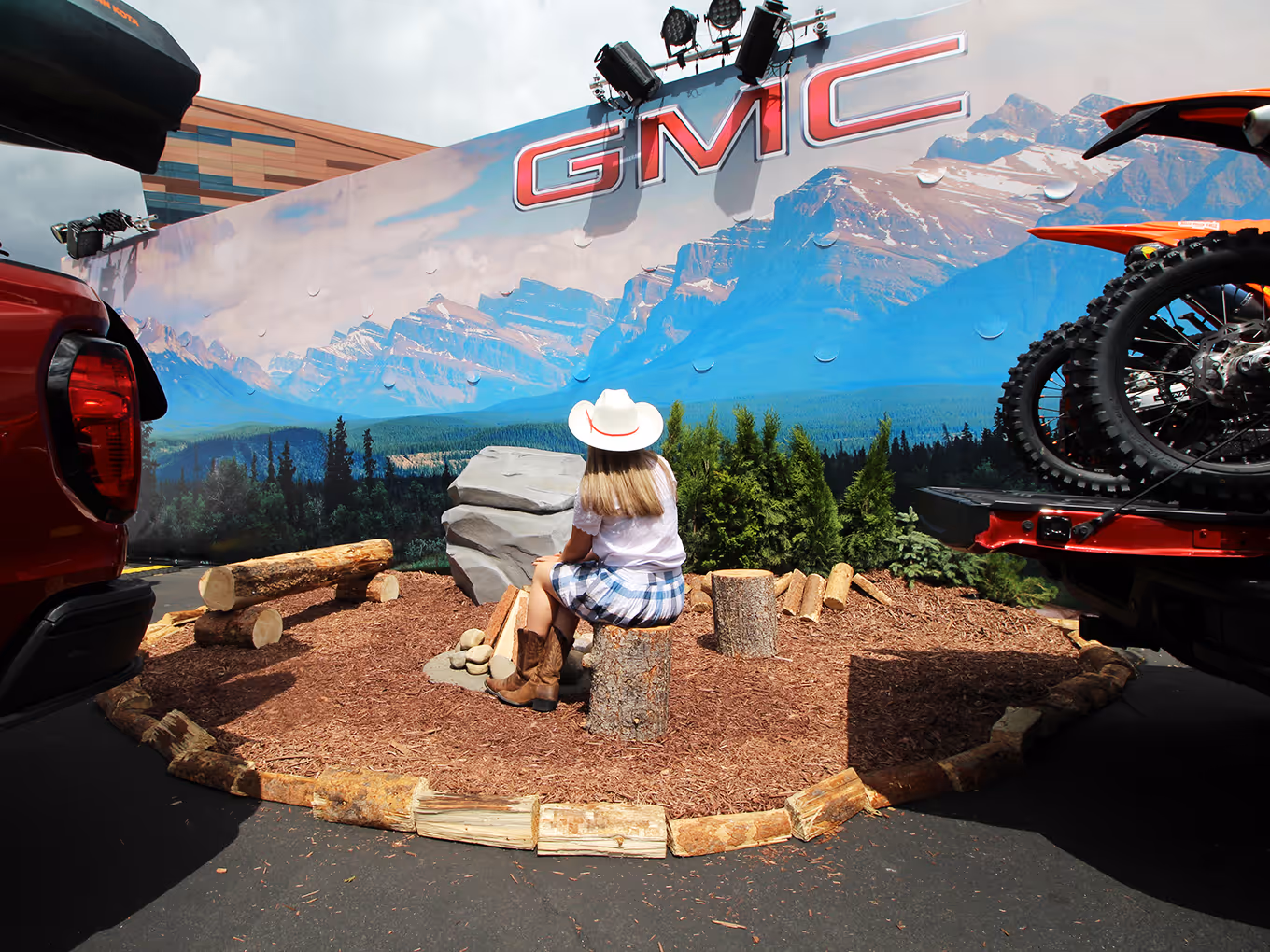 Our team engineered a custom-built claw machine structure using a modified gantry crane sourced from Kristian Electric, adapting it to support a fully operational claw suspended above a truck bed filled with oversized, branded prize boxes. Visitors controlled the claw through a steering wheel console designed to simulate the experience of driving the truck. The control station included accessibility features such as a wide entry ramp and a sliding seat that could make space for wheelchairs. Bold graphics, integrated lighting, and custom signage helped draw attention from across the midway. The result was a crowd-pulling, highly shareable activation that drove engagement and reinforced GMC’s brand presence at the Calgary Stampede.