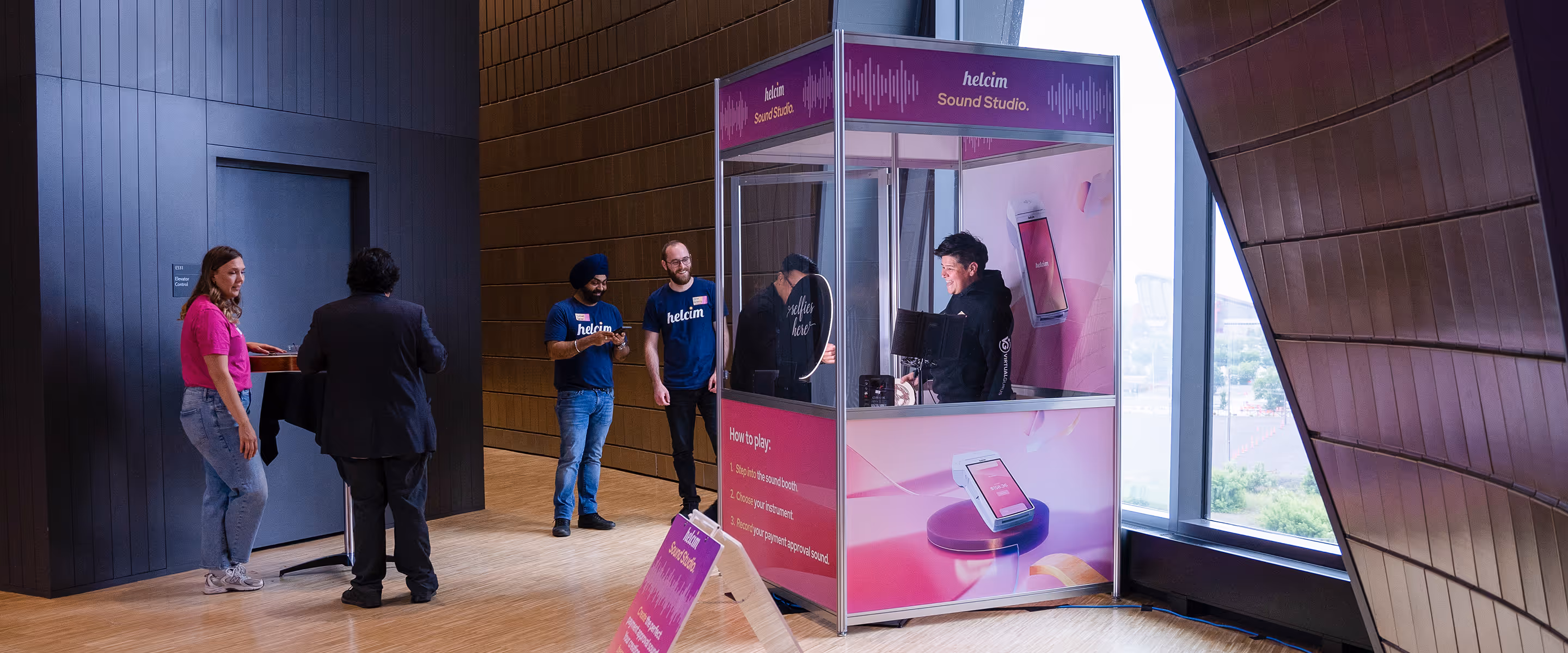 We then built a customized modular sound booth for the Smart Terminal launch in 2024, complete with branded graphics. The booth was equipped with a variety of instruments, inviting guests to playfully record their own payment processing jingles.