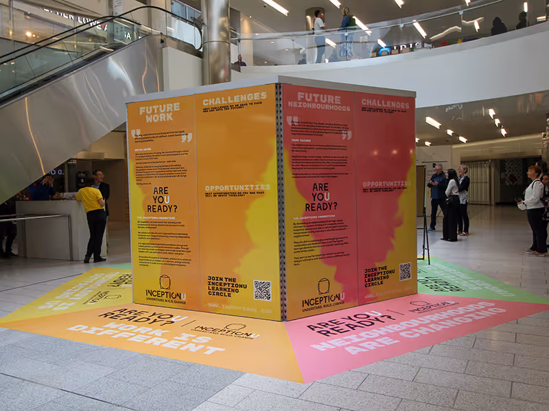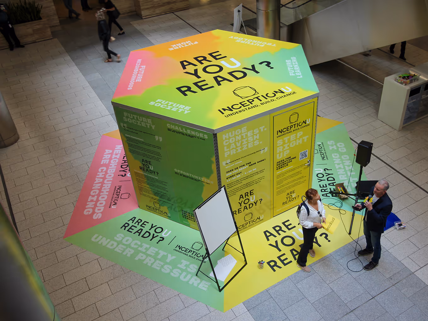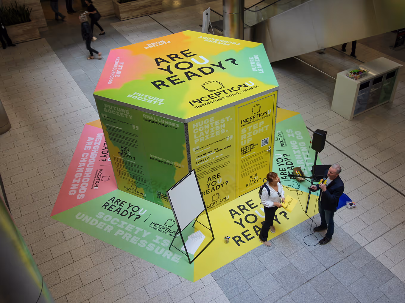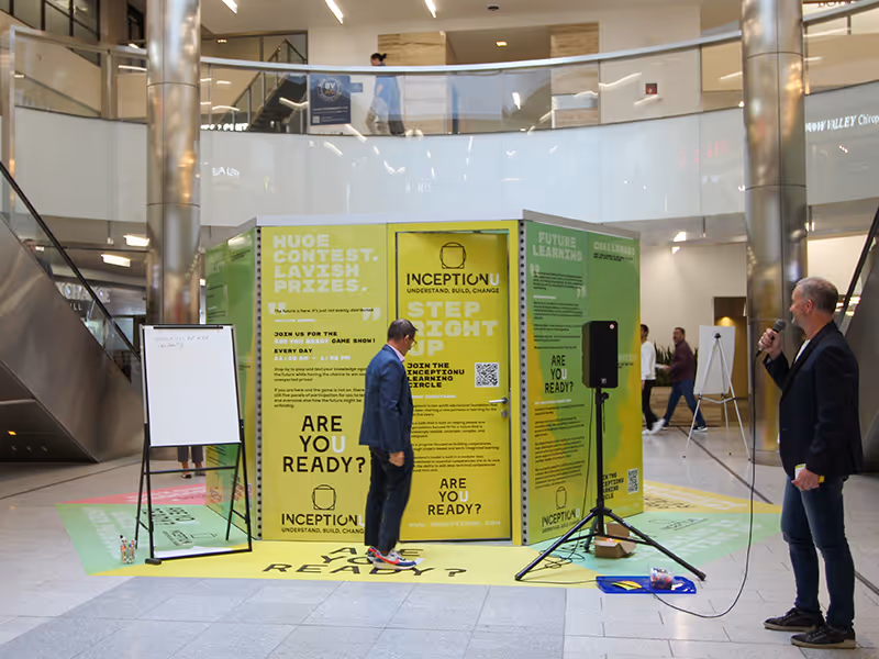 As part of LobbyFest, InceptionU and Firecracker Strategies launched Are You Ready?, a public gameshow-style activation designed to spark ideas about Calgary’s future. The goal was to create a modular, engaging game that encouraged participants to reflect on possibility for themselves and for the city. With a multi-day schedule and rotating venues, the setup also had to be lightweight, portable, and quick to assemble each day.