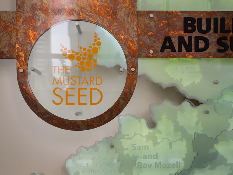 The Mustard Seed approached us to design a meaningful donor recognition feature for their Calgary location. Their goal was to honour the community behind their mission and reflect the spirit of hope, compassion, and growth at the heart of their work.