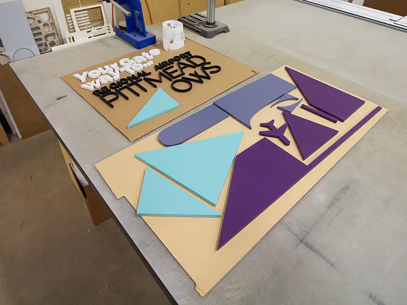 Built on a modular beMatrix system, the scalable exhibit combines clean architecture with an approachable feel. Full-height branded graphic panels and dimensional signage anchor the space, while a warm wood-finish counter and custom counter create functional, approachable work zones. Overhead, a custom canopy printed with a vibrant sky graphic ties the experience together, with integrated lighting for added atmosphere. Laser-cut runway and airplane cutouts on the podium reinforce the aviation theme, with layered geometric shapes and dimensional letters. The booth can easily convert into a 10x10 layout, making it a sleek, scalable solution.