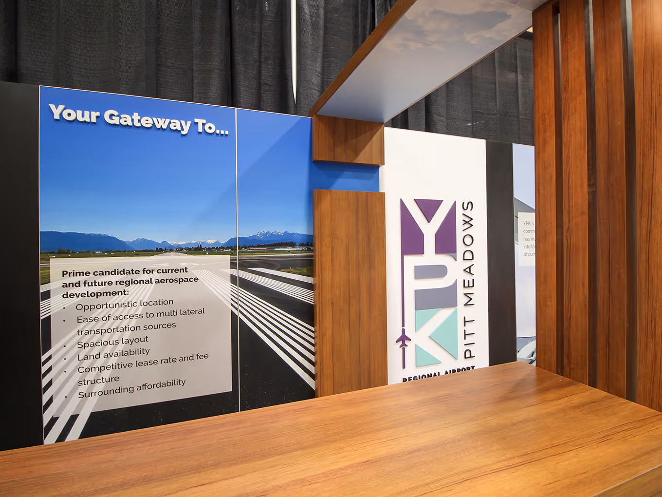 Fly YPK — the Regional Airport of the Fraser Valley — needed a modern, modular booth to represent their growing presence as a gateway to air travel. The space had to feel welcoming and professional, with the flexibility to adapt across events. The booth needed strong branding and practical workspaces for face-to-face engagement that would work in a 10x10 and 10x20 booth space.
